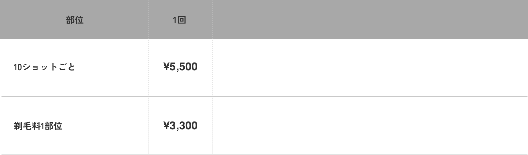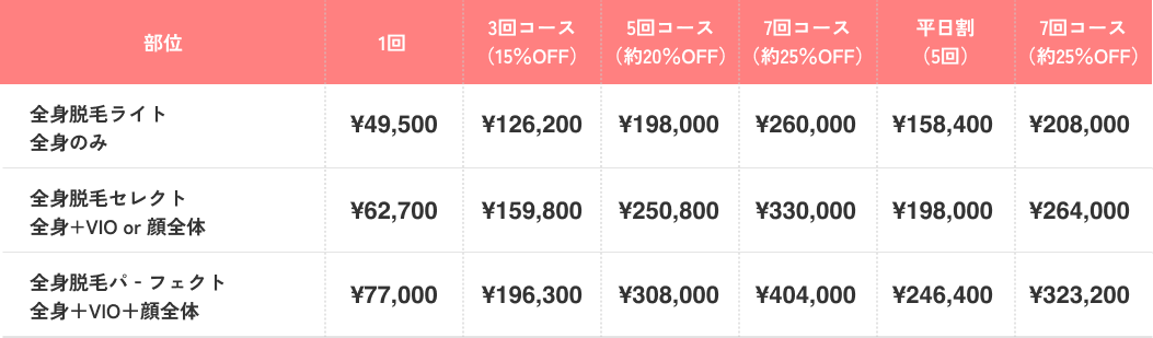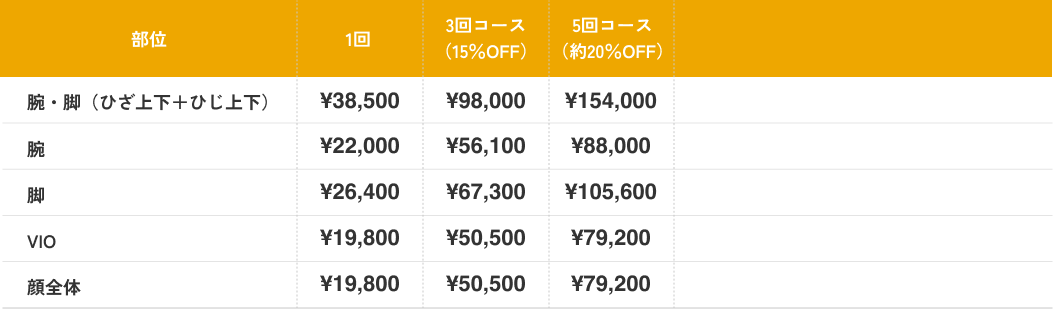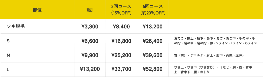 医療脱毛の料金表