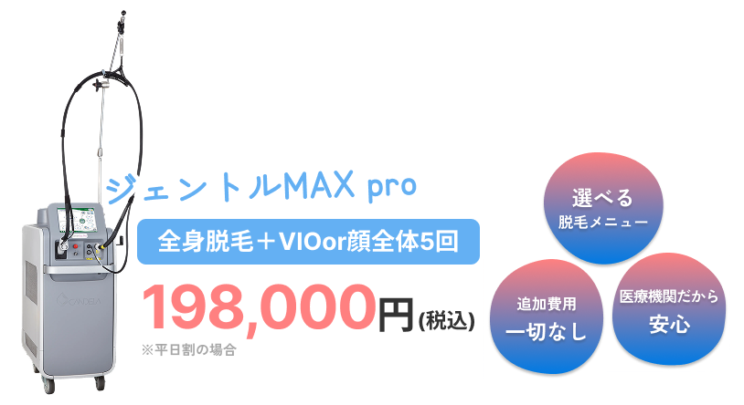 脱毛を始めたい方には、大人気機器であるジェントルマックスプロを