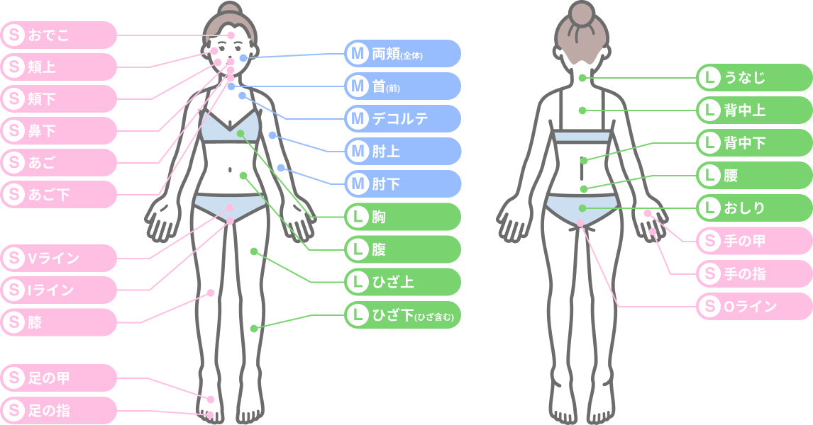 脱毛部位メニュー